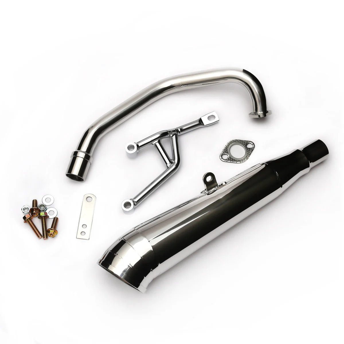 50cc GET engines. Crafted from high-quality stainless steel and polished to a sleek finish, this exhaust enhances both performance and sound, giving your ride a crisp, aggressive tone while optimizing engine efficiency.