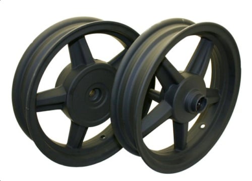 GY6 5 Star/5 Spokes 12" Wheel/Rim Set for 125cc/150cc Long Case Scooters. These will work perfectly for Honda Ruckus with GY6 engine swap running non-fatty wheel set up and front disc brake conversion with custom axle spacers.