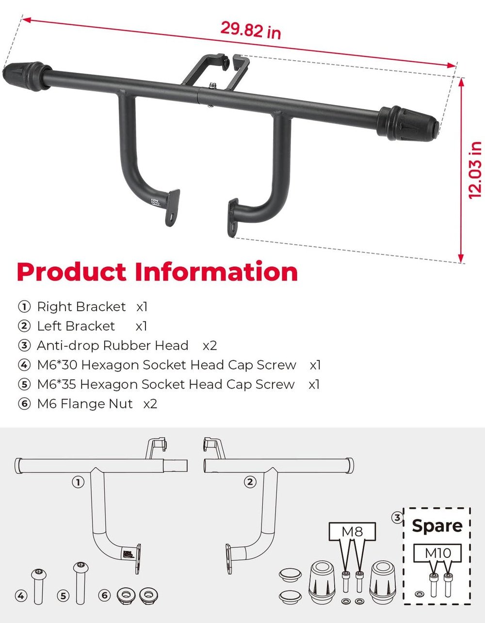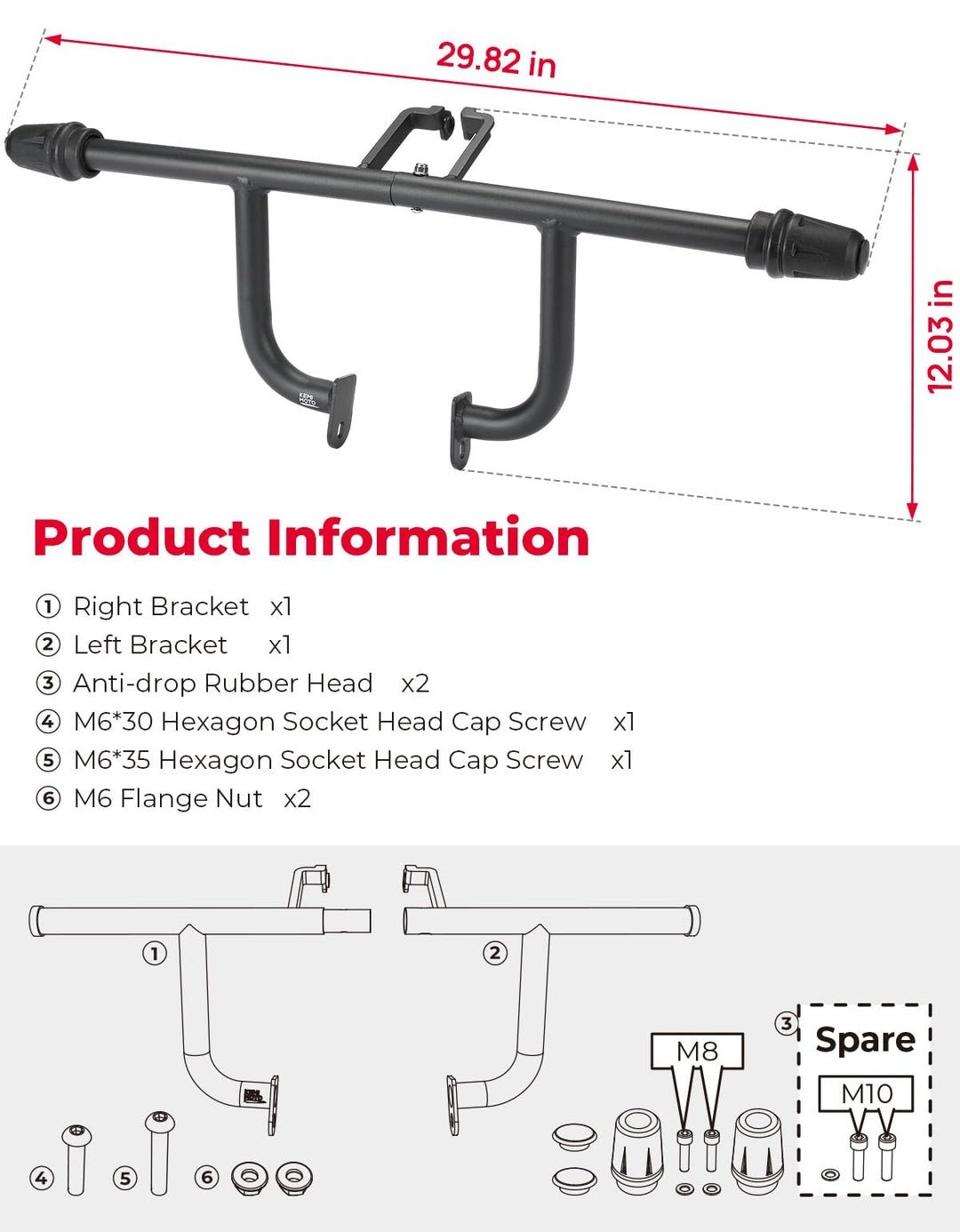Package Includes: A pair highway crash bars, includes screws and instructions.