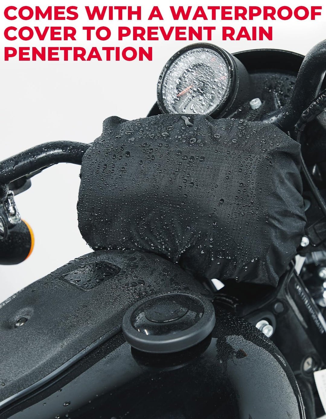 KEMIMOTO handlebar bag comes with a black waterproof rain cover, which can keep your items dry in light rain. Keep your valuables dry no matter what the weather.