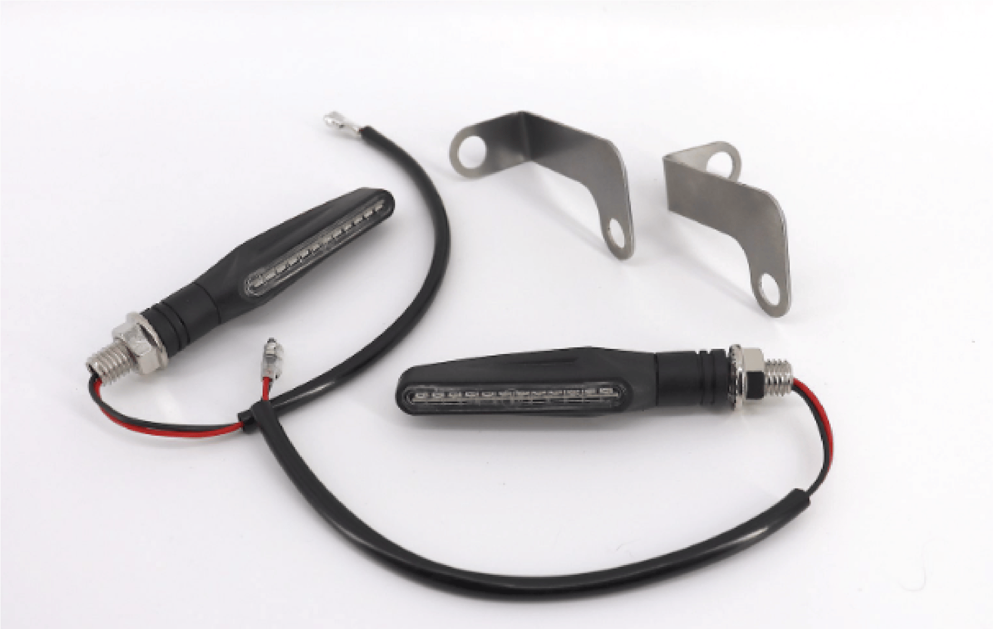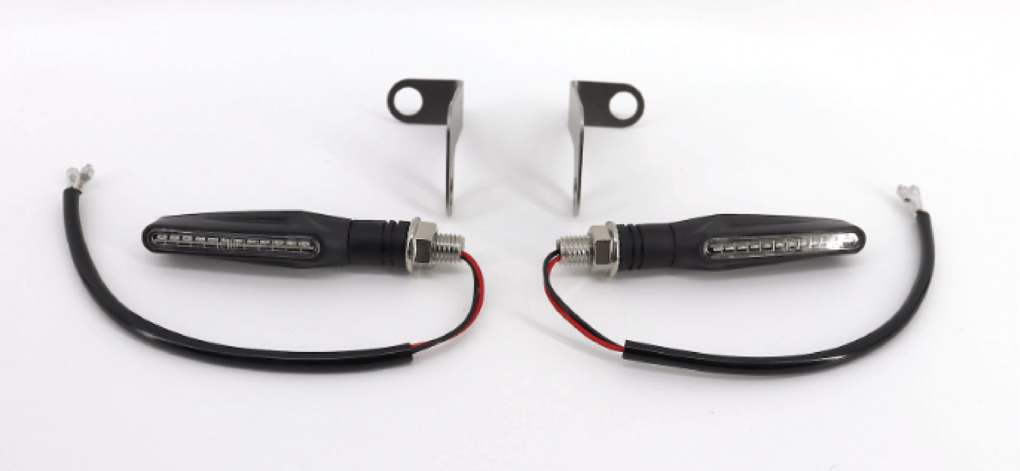 Need a clean and effective front blinker kit. These install straight to the triple tree plate. Much more unique than flush mounts on the battery box or front rack mounting where your reflectors used to be. Cool Sequential blinking.