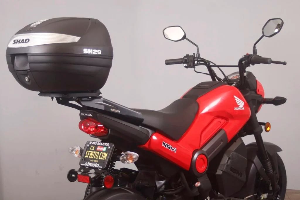 The SH29 Top Case by SHAD is a fully removable top case with enough storage capacity for one (1) Full Face Helmet and a pair of Gloves. The SH-29 top case is the optimal storage solution for mopeds, scooters, off road motorcycles and street bikes, weighing in a little under 7 pounds. This SHAD trunk features the Press Lock system for quick release and an integrated carrying handle for easy portability. Mounting plate included for quick install on any flat rear surface. Backrest and LED Light kit and colors are optional.