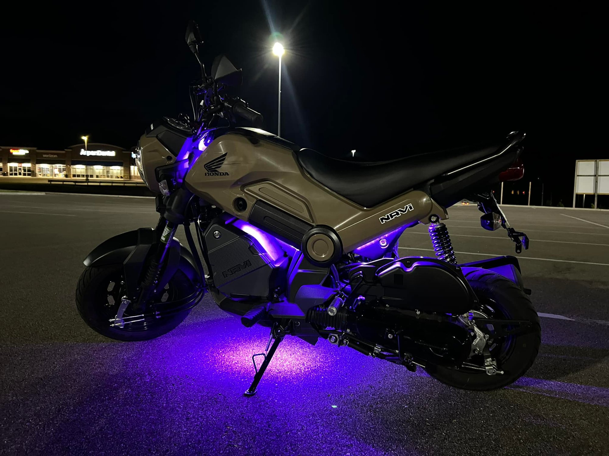 Light up your NAVi and turn every night ride into a show with the Reckless Customs NAVi 110 Under glow Kit. Designed for style, safety, and full control, this kit brings your bike to life with brilliant color and customizable lighting—all from your smartphone.