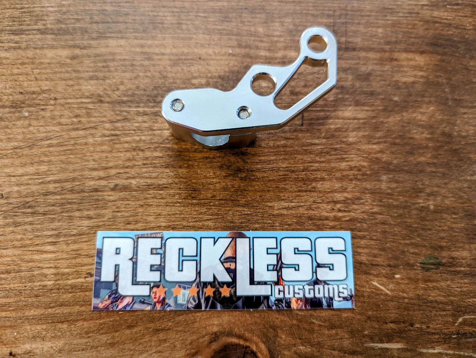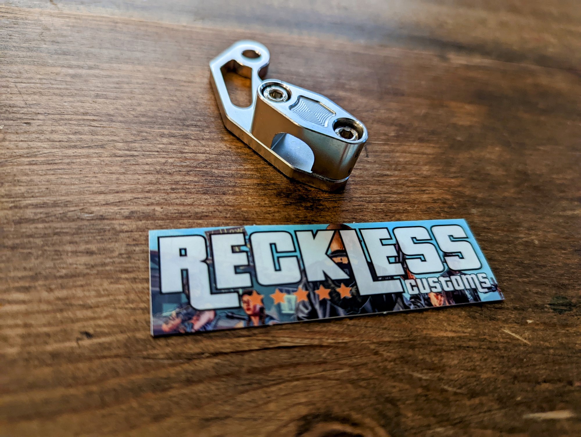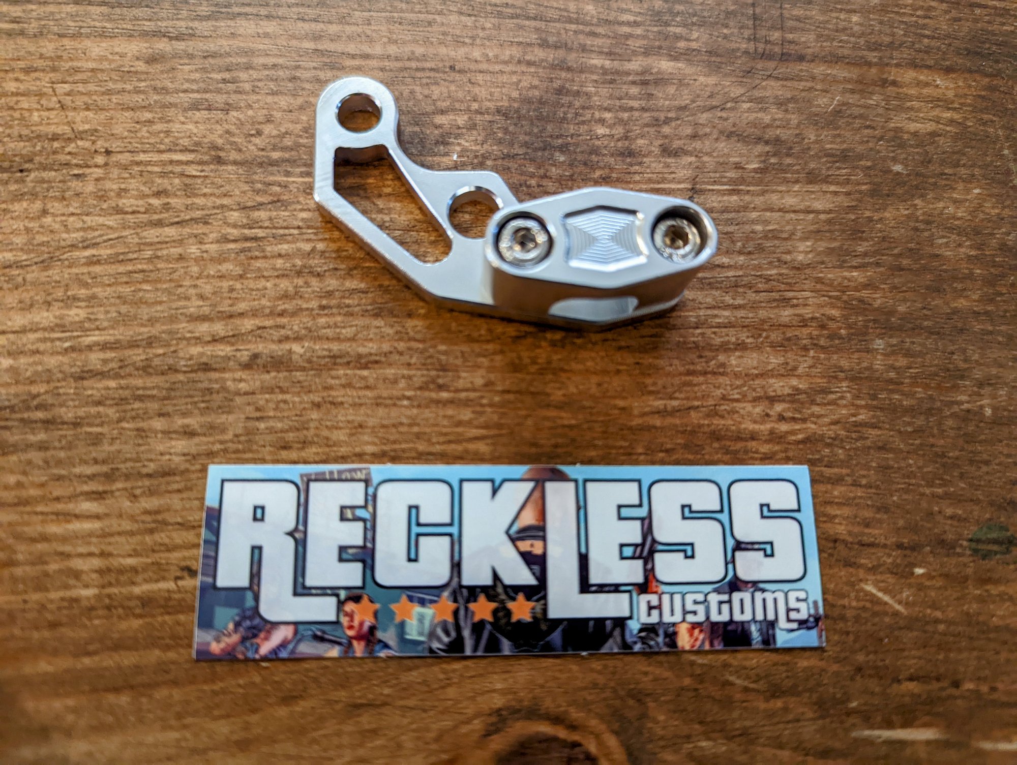 Tired of your brake cable rubbing your tire or want to clean up that brake line routes. This is a mini Aluminum Brake Cable Stay and is perfect for this use. Get Reckless