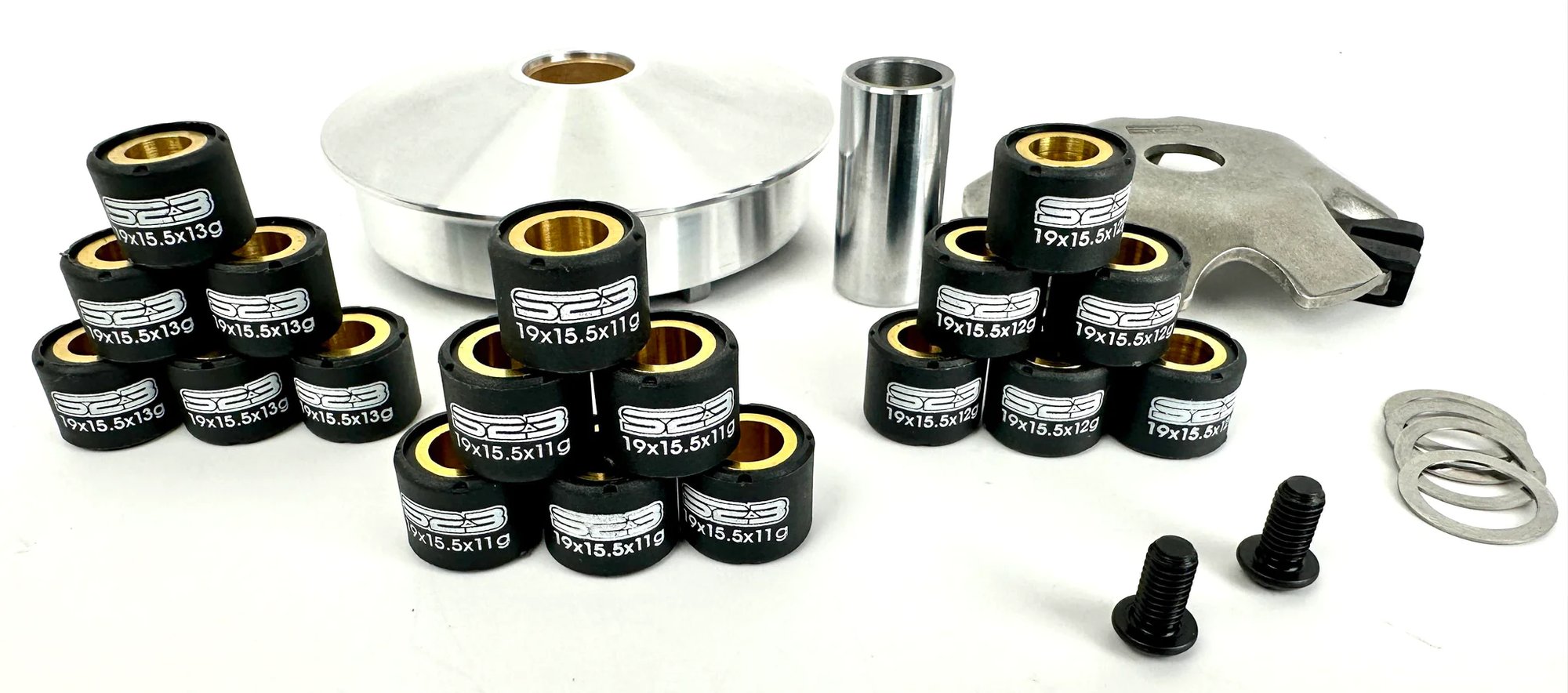 S23 now offers the most comprehensive variator kit for the Honda NAVi. Proven MPH and acceleration gain! This kit includes 3 sets of roller weights, and shims to tune your belt ride height! Performance is slightly better than the malossi kit, and the cost is significantly lower!
